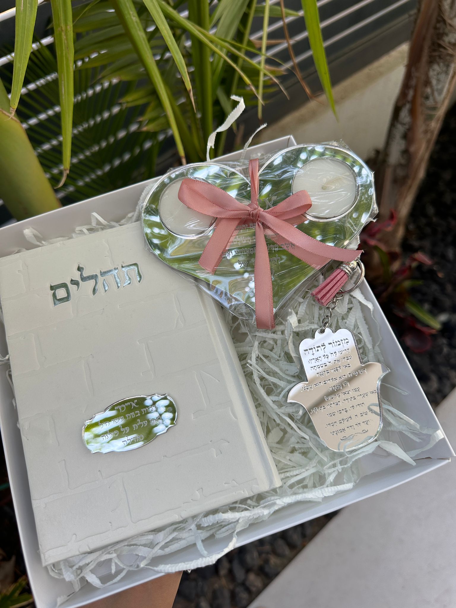 סט מתנה תהילים הדלקת נרות ומחזיק מפתחות מזמור לתודה